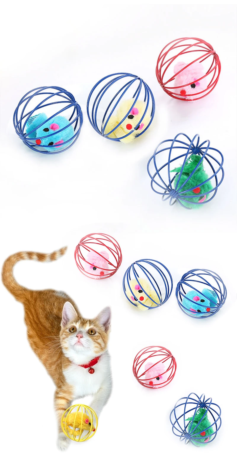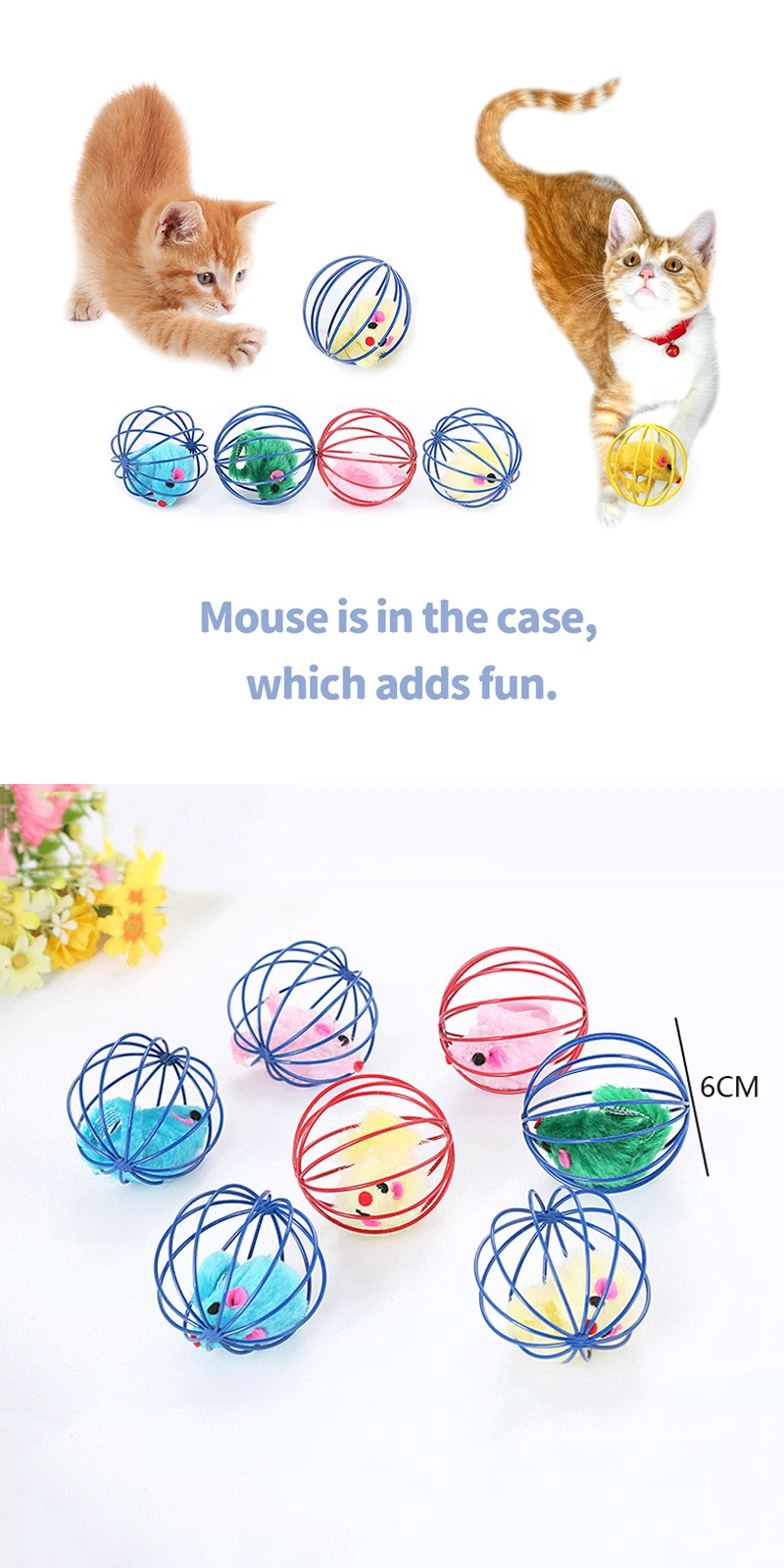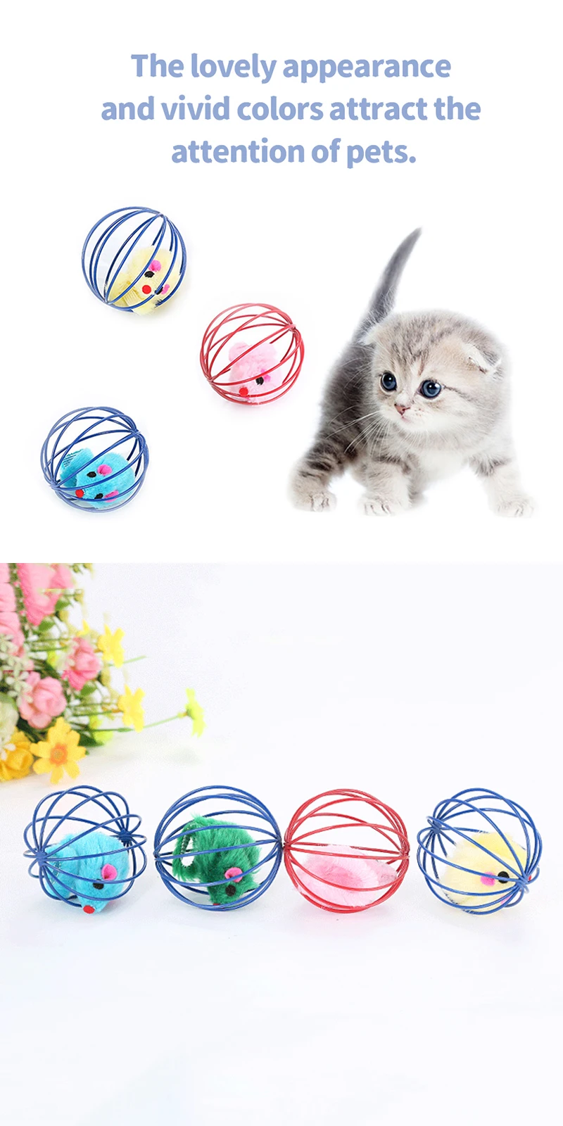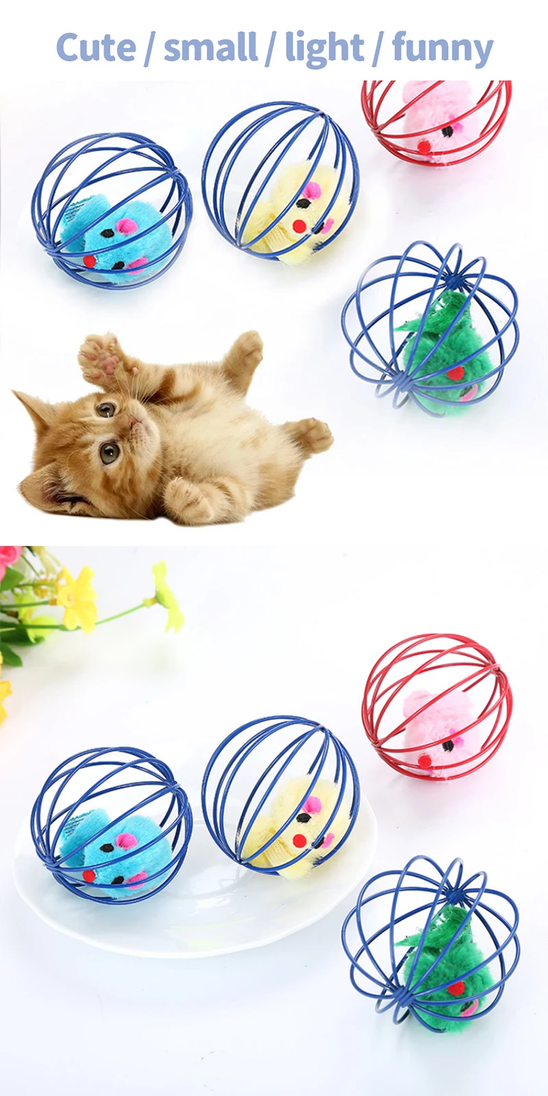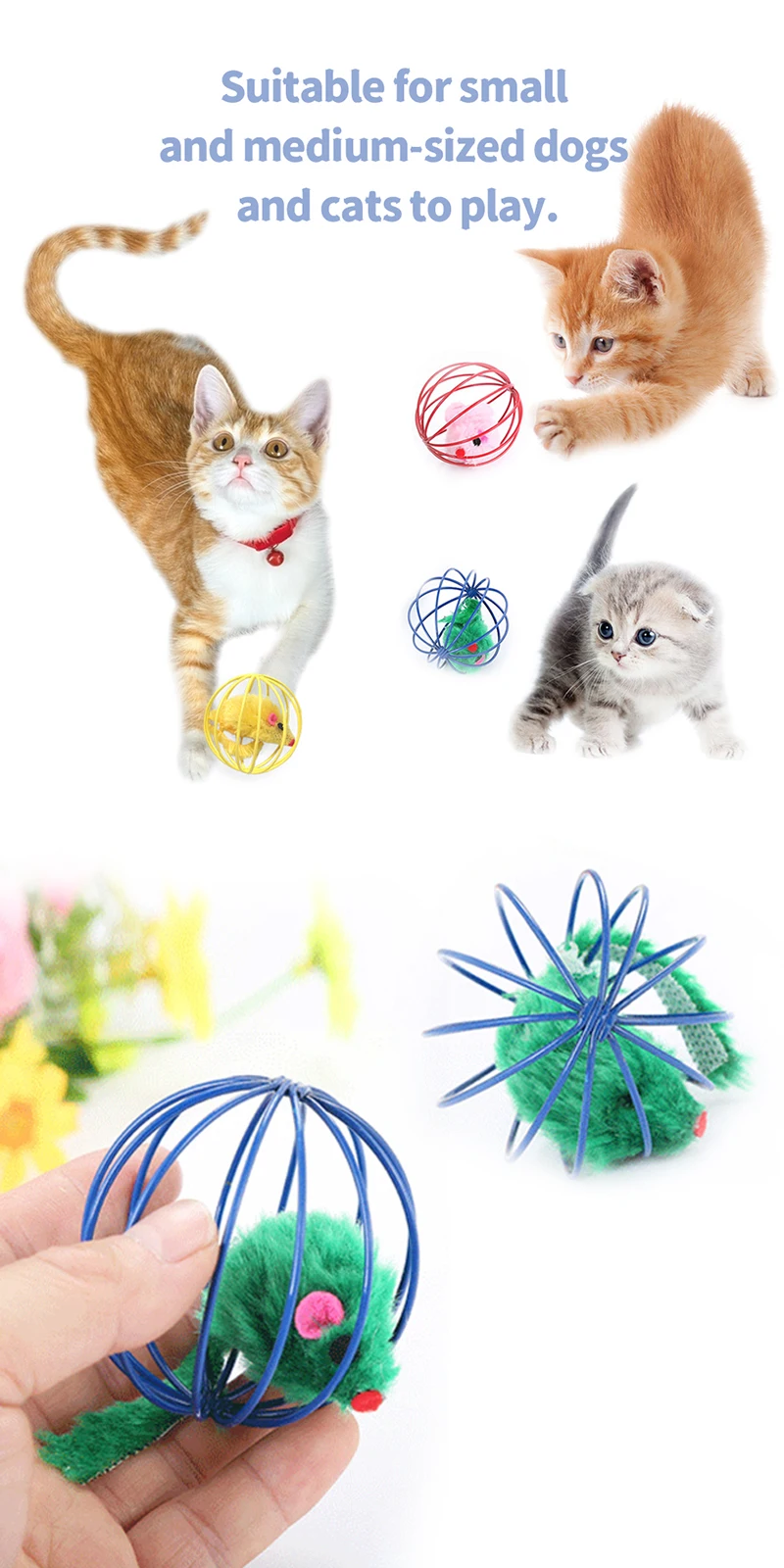 Cat Toy Pet Ball Toy Cage Plush Rat Colorful Interactive Training Toys Kitten Puppy Mouse Cage Ball Cat Accessories Pet Supplies